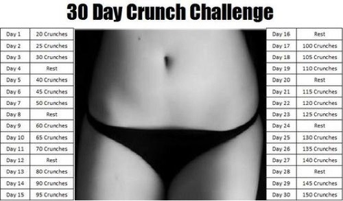Corps sain rime avec sport si, si je vous l'assure ! Une fois que vous êtes en parfaite harmonie avec votre alimentation, il ne faut pas se relâcher et conserver une bonne hygiène de vie en pratiquant une activité sportive régulière. On ne vous demande pas de courir le marathon loin de là simplement de faire 30 à 45 minutes de sport par jour. Et même si vous ne parvenez pas à faire 40 minutes de sport, le moindre effort est déjà un bon départ. Privilégiez les escaliers aux ascenseurs ou la marche à pied ou le vélo à la place du métro ou du bus. J'ai également des petit trucs pour vous, on voit pas mal de "challenge" sur internet dont le "crunch challenge" ou le squat "challenge" (voir ci-dessous) afin de travailler à la maison à son rythme. Je vous ferais un article séparé très prochainement concernant ces méthodes ;)