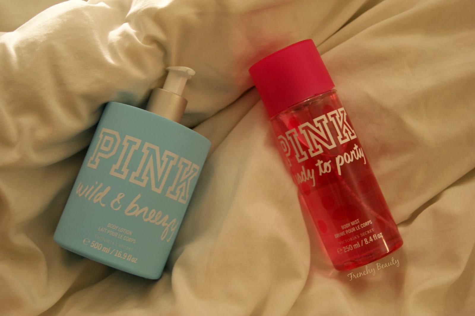Avec le nombre de fois incroyable où j'ai entendue parler de la gamme beauté de Victoria's Secret, je n'ai pas pu résister à la tentation. Lors de ma dernière visite chez VS je suis tombée sur une offre dans la gamme PINK totalement alléchante; deux produits pour 18£. J'ai donc jeté mon dévolu sur un lait pour le corps "Wild & Breezy" qui réunits les délicieuses odeurs de goyave rouge et fleur de la passion le tout composé d'extraits d'aloès, d'avoine de pépins de raisin et un mix de vitamines E & C. J'ai également emporté avec moi une brume corporelle nommée "Ready to party" qui me va comme un gant ;) avec une odeur délicate à la fleur de lotus rose et de pomme. Autant vous dire que je suis tombée amoureuse de ces produits avec leur packaging à tomber !